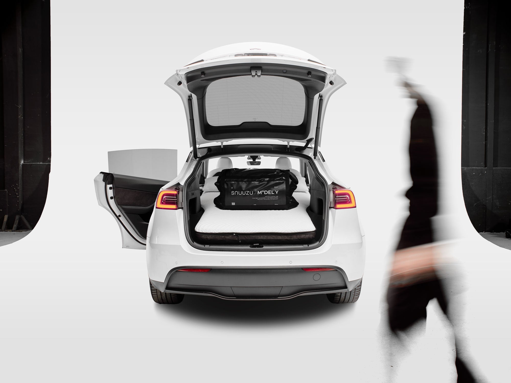 Ever seen a luxurious double bed disappear in a duffle bag? When packed up, the double bed is small enough to fit into the sub-trunk of your Tesla Model Y and Model 3.