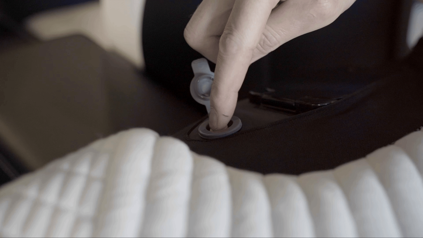 We integrated a button to release a little air from the pressurised layer, resulting in a softer feel.